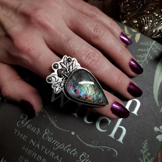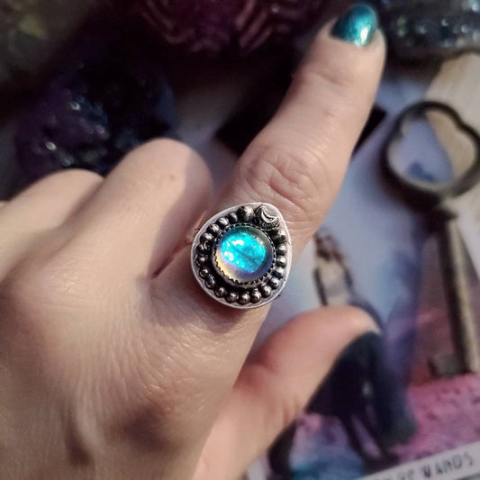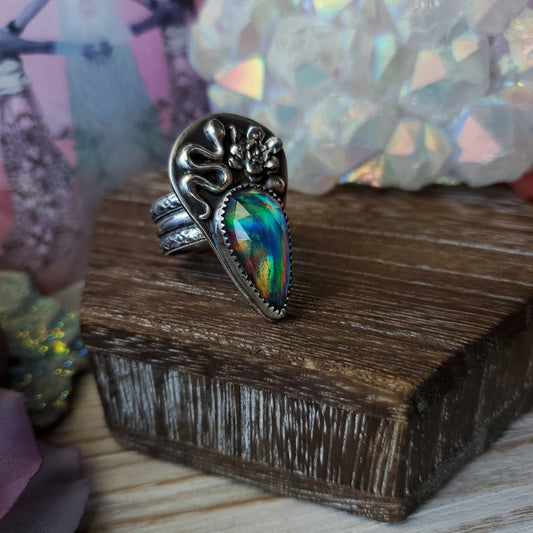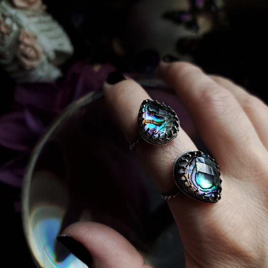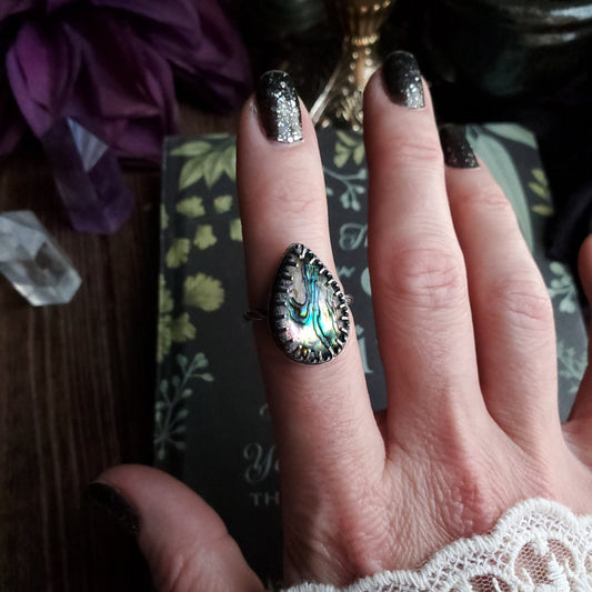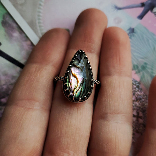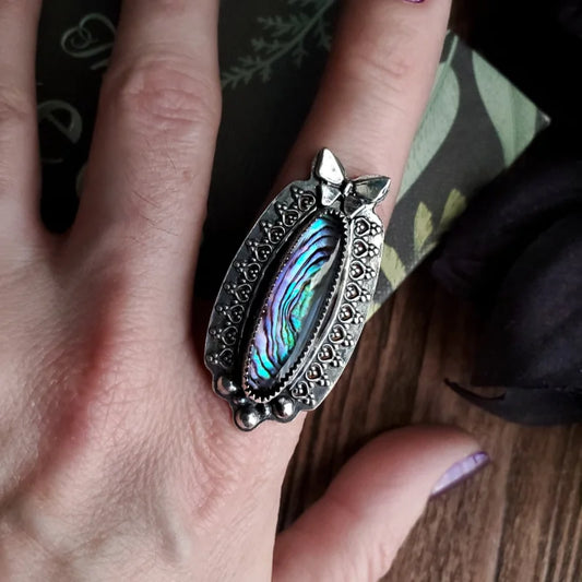 Abalone & Quartz Crystal Ring I Witchy Jewelry I Stellar Fae