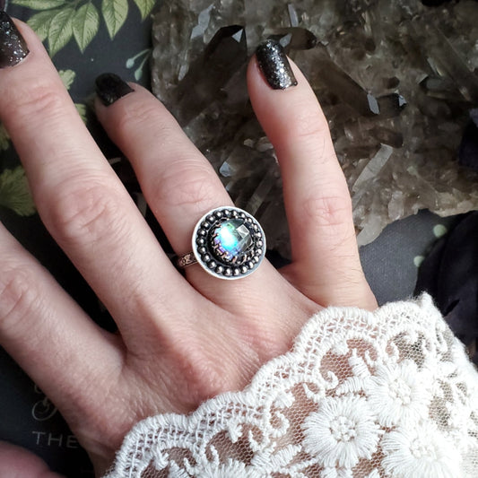 Faceted Abalone & Quartz Ring - Sz 7.5