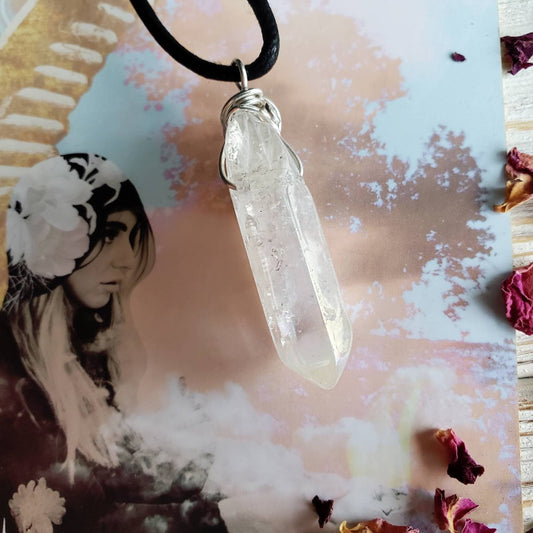 Aura Quartz Crystal Point Wire Wrapped Necklace