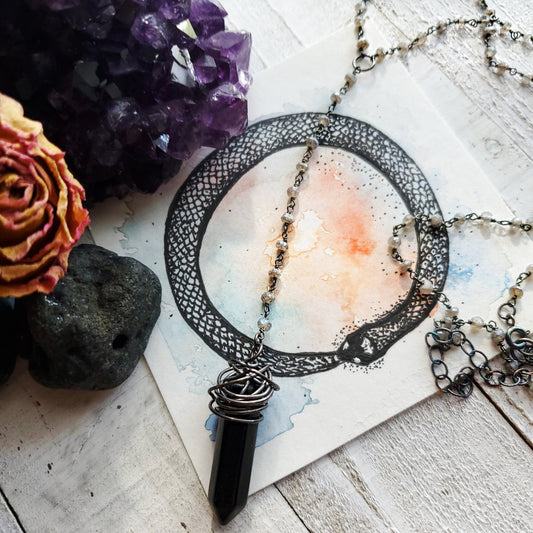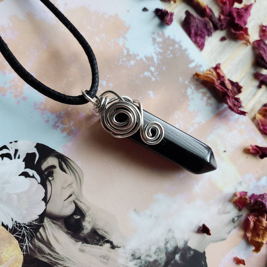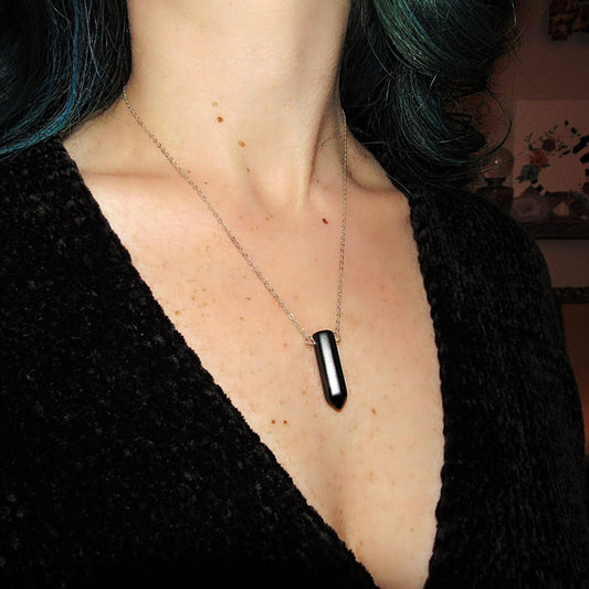 Black Onyx Crystal Necklace - Sterling Silver