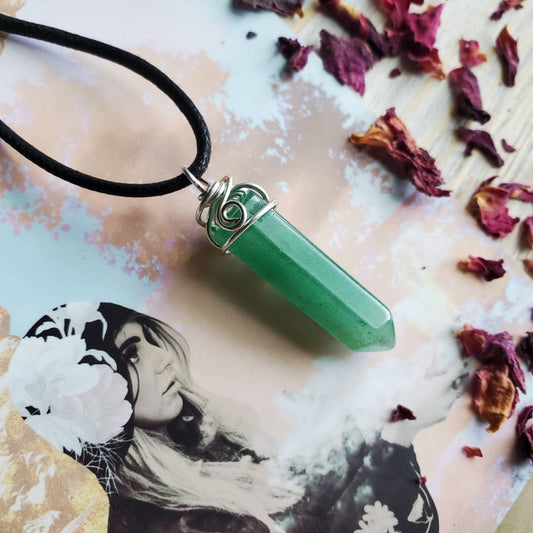 Green Aventurine Crystal Point Wire Wrapped Necklace