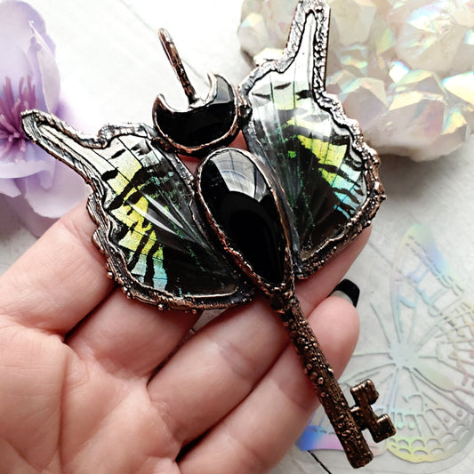 Urania Leilus Moth Wings Obsidian & Onyx Key Necklace